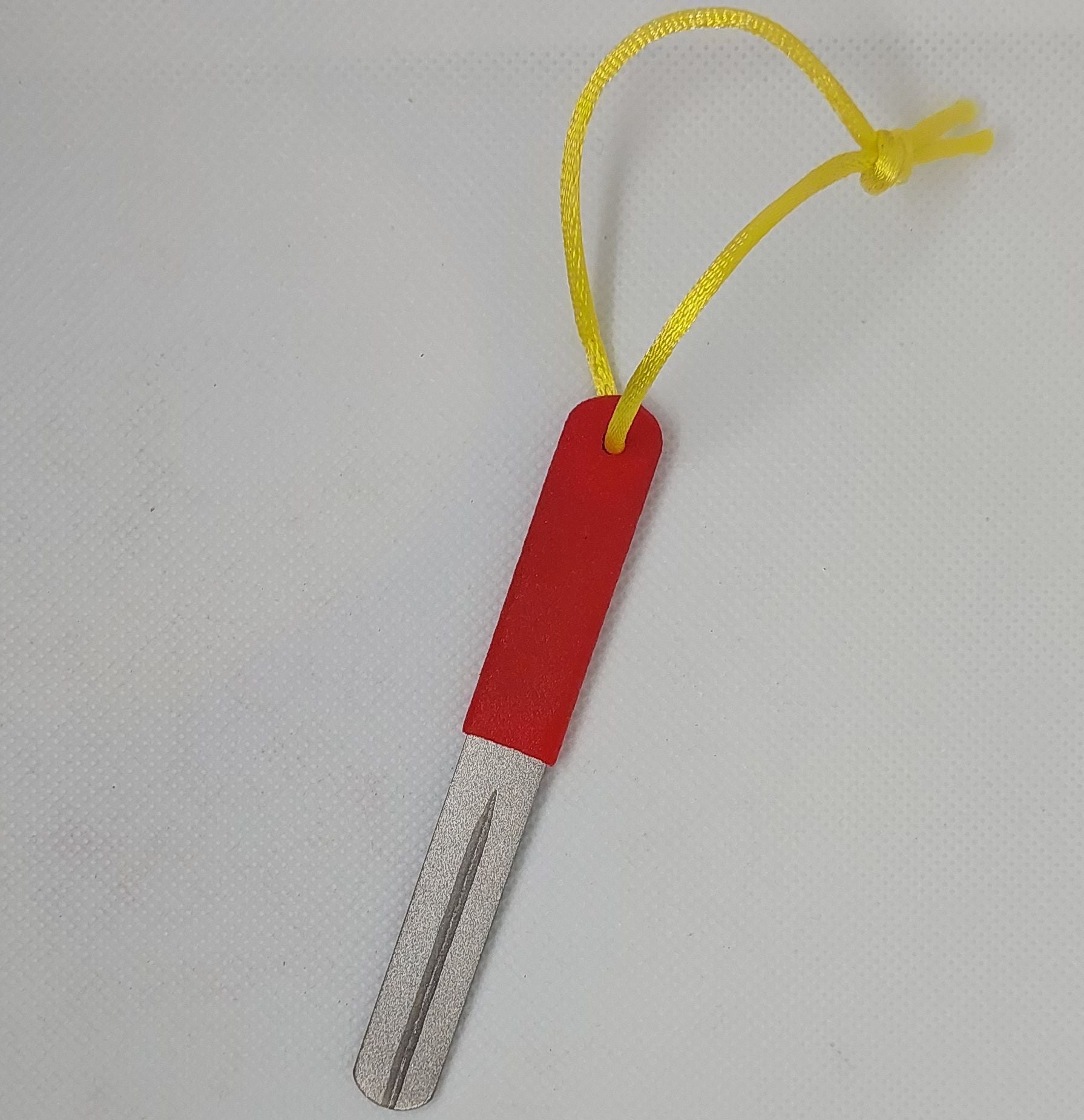 【Material】Diamond. This sharpener is rust-resistant. The rubber grip on the handle end is tactile to prevent the sharpener from slipping.